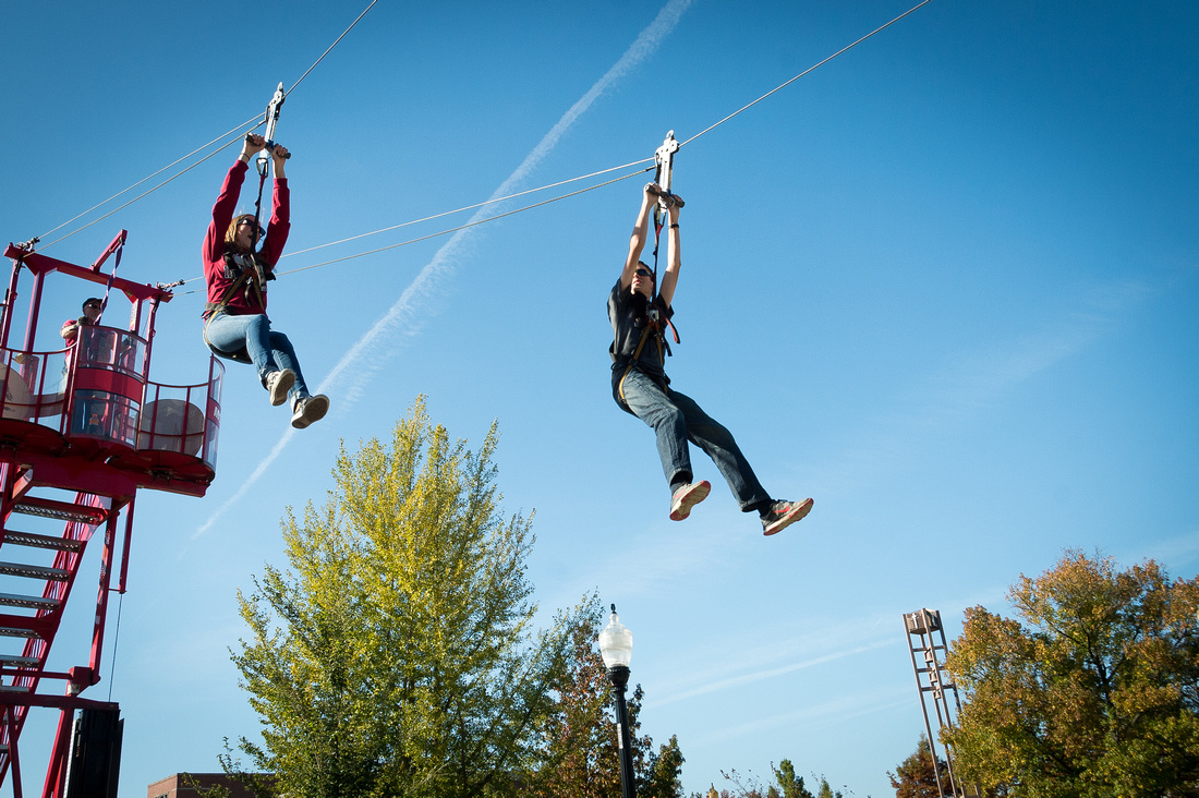 After a busy week of events that included a Plain White T’s concert and a standing-ro0m-only presentation by Neil deGrasse Tyson, the campus awoke Saturday to blue skies and Indian Summer temps that reached the mid-70s. The conditions were ideal for the inaugural Hound Hustle 5K, the Homecoming Parade, zip line rides and a bigger, better Tailgate Town outside Key Stadium.