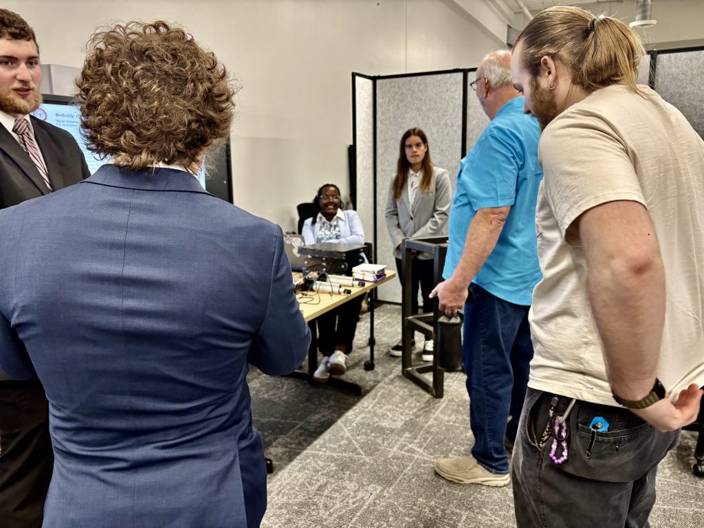Reminiscent of shows like “Shark Tank”, the expo also included a business pitch competition. While most students complete projects for outside clients and stakeholders, junior year students had the opportunity to pitch their products to business professional judges. Students were able to respond to feedback and address potential flaws in their business model or design process.