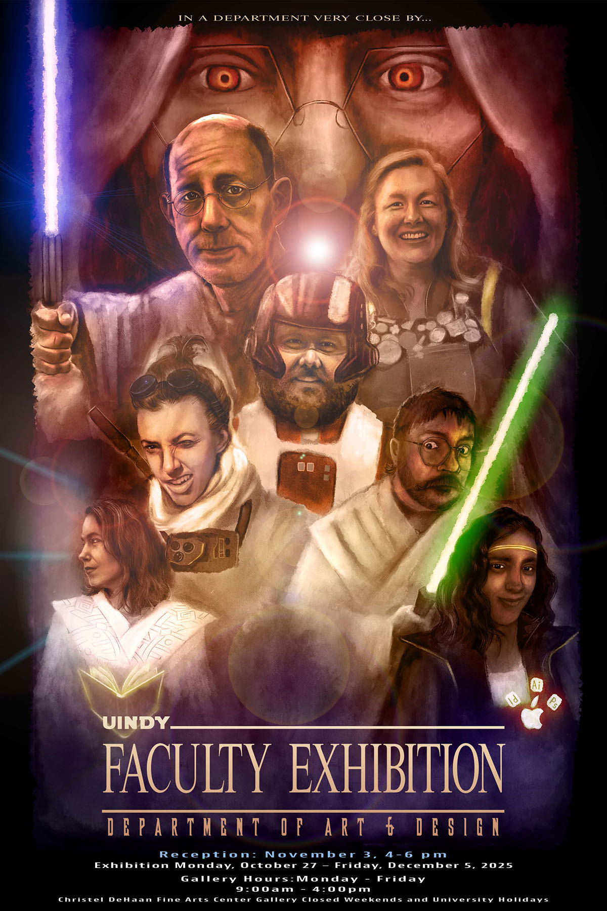 Full-time faculty from the University of Indianapolis Department of Art & Design exhibit their creative scholarship in the areas of art history, graphic design, painting, drawing, photography, printmaking, sculpture, ceramics, and illustration.